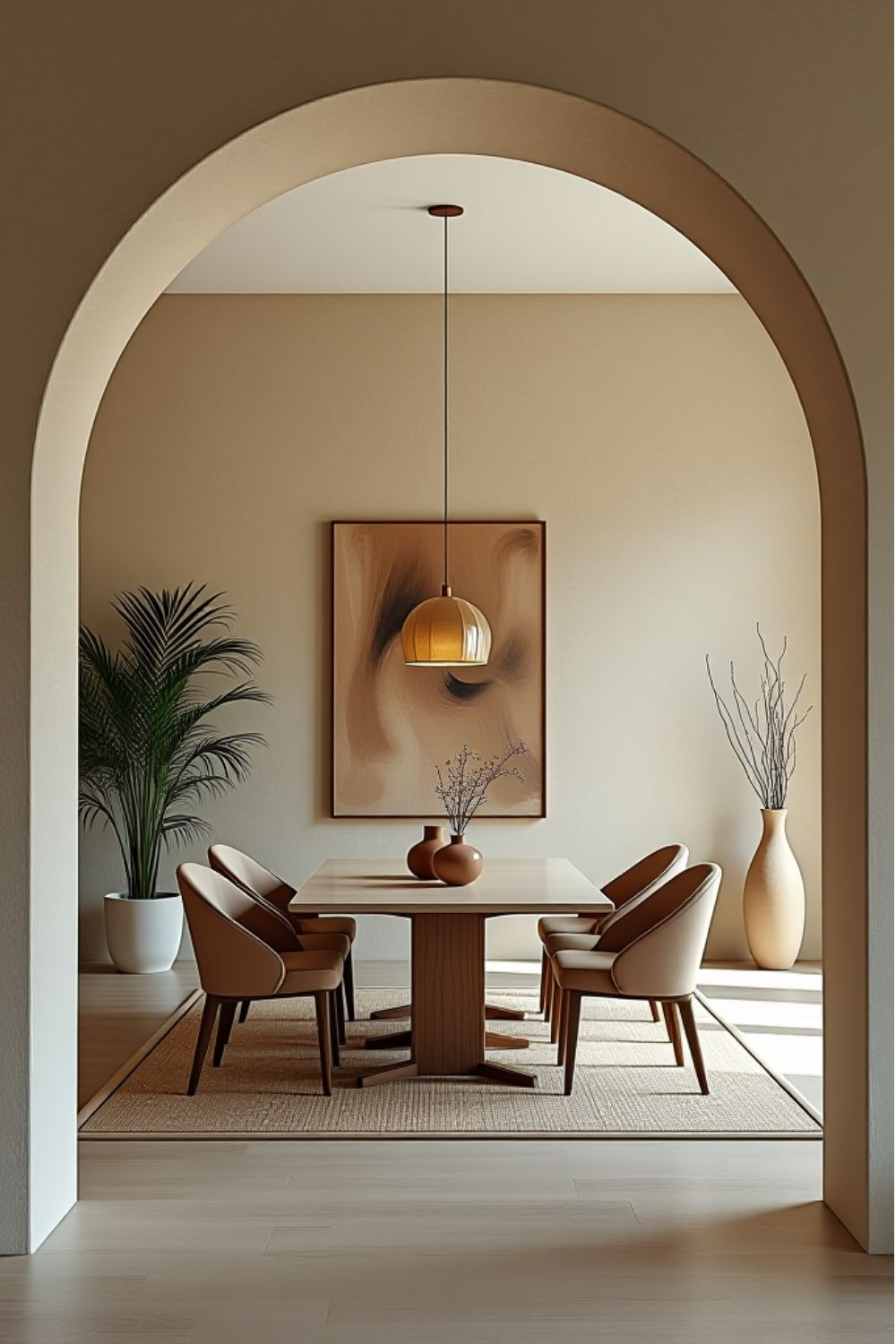 A minimalist deco arch wall often uses a 600 mm radius for smooth curvature.
