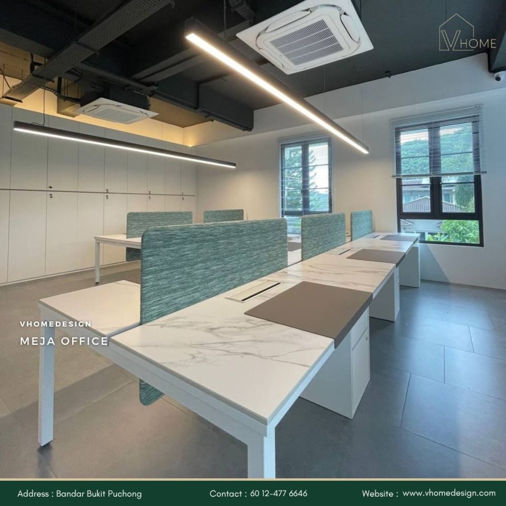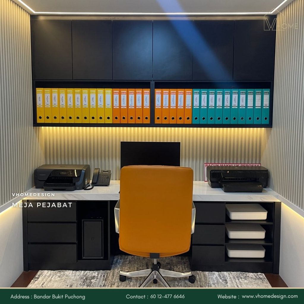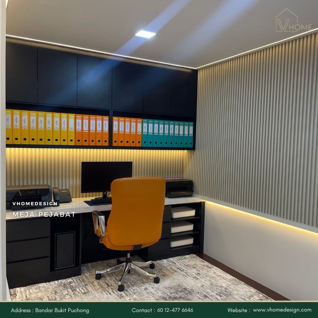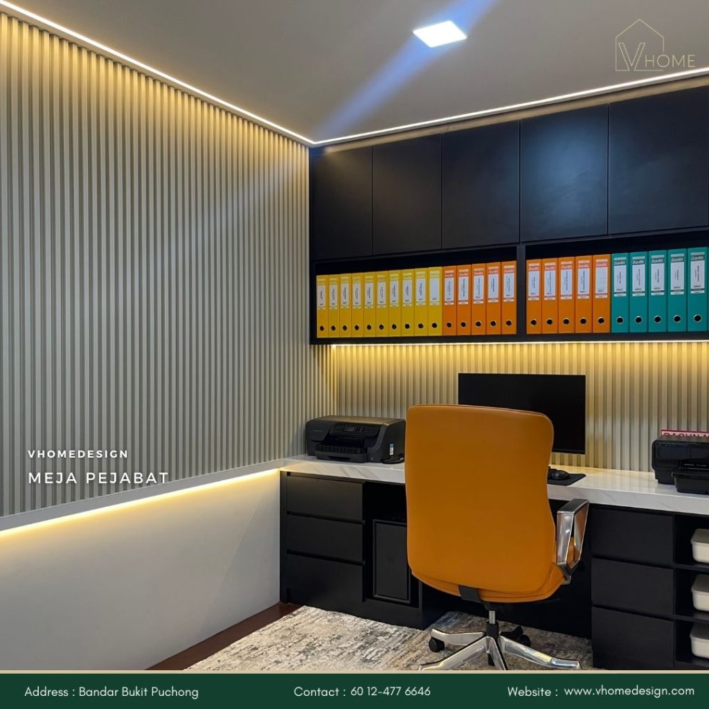 Dengan Vhome Design Solutions, anda boleh mencipta ruang kerja yang profesional, selesa, dan produktif.