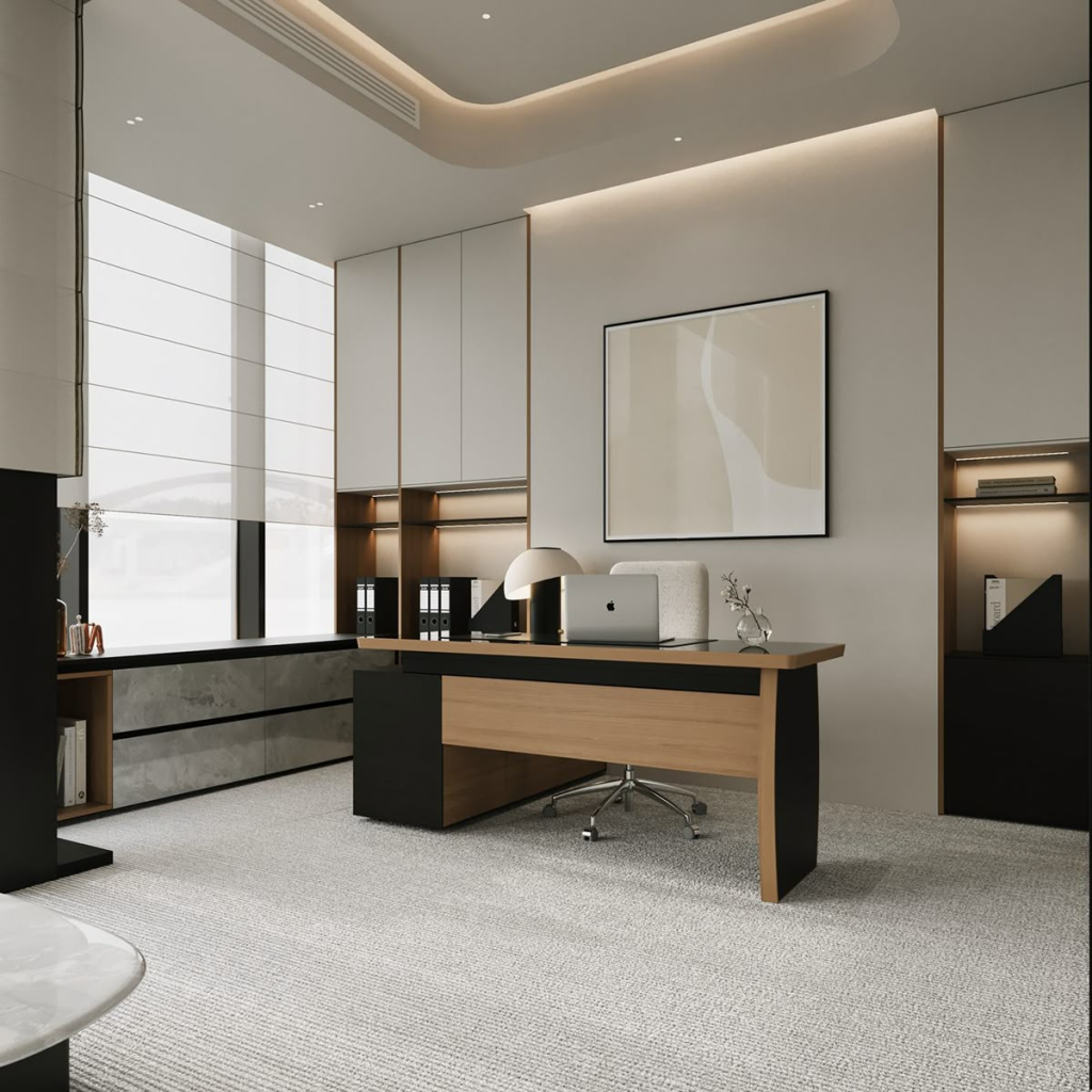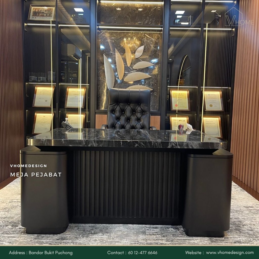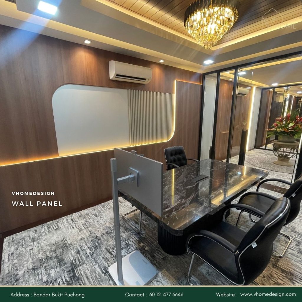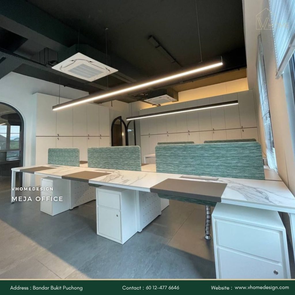Dengan Vhome Design Solutions, anda boleh mencipta ruang kerja yang profesional, selesa, dan produktif.