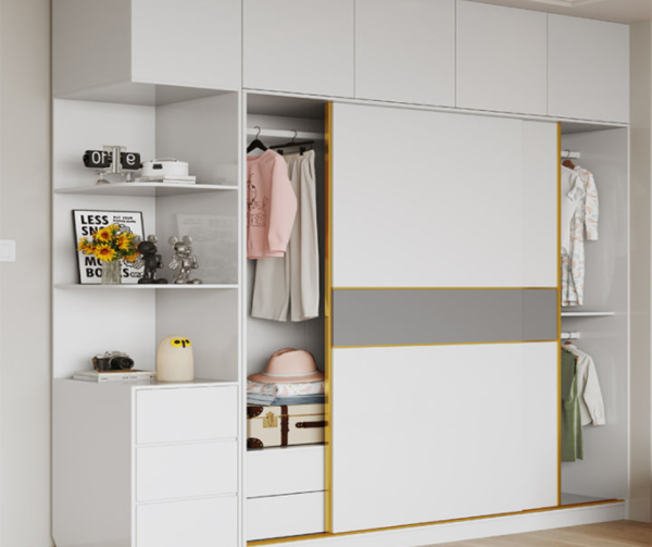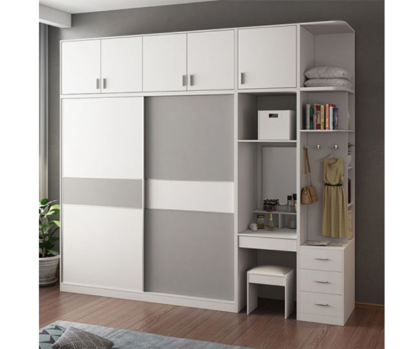 Sliding Door Wardrobe Cabinet are use to operate on a track system, with one door overlapping the other when opened, which means there’s no need to account for floor space outside your wardrobe, unlike hinged doors that need space to swing out. They are typically made of materials that provide durability, visibility, and security. Such as glass, metal, wood, acrylic/Perspex, and plastic.