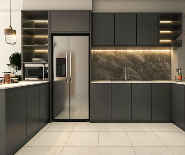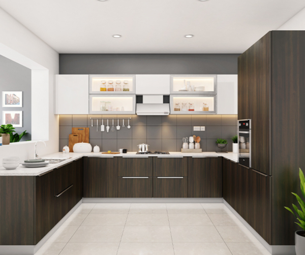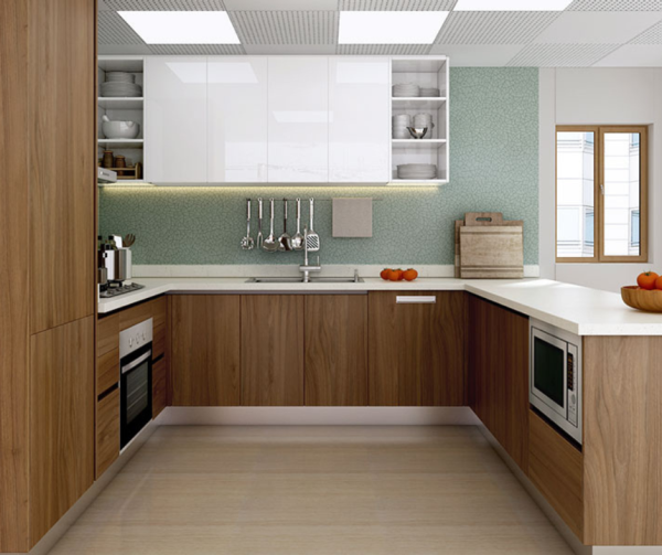 U Shape kitchen cabinet are commonly used in contains an arrangement of different kitchen units positioned on three adjacent walls that makes it appear to form the shape of the letter ‘U’. They are typically made of materials that provide durability, visibility, and security. Such as glass, metal, wood, acrylic/Perspex, and plastic, because VHOME has more experience about the materials of your kitchen cabinet.