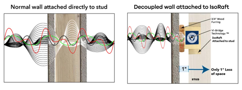 Principle: Decoupling isolates surfaces to prevent sound from traveling through physical contact points. It prevents sound waves from easily passing through connected materials.