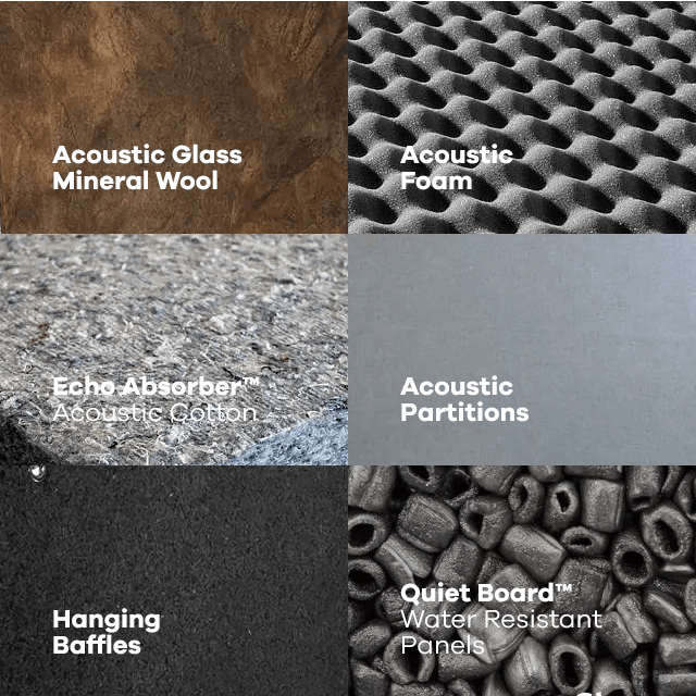 Materials: Green Glue and acoustic panels act as damping layers between walls, floors, and ceilings to reduce sound transmission.