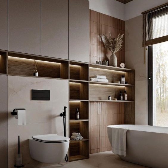 - Optimize bathroom space with corner-mounted sinks and toilets.