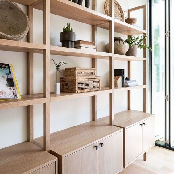 - Use shelves that reach up to the ceiling to maximize vertical storage in any room.