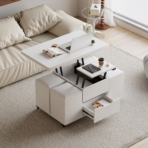 Furniture like coffee tables, benches, and headboards with hidden compartments can store items discreetly.