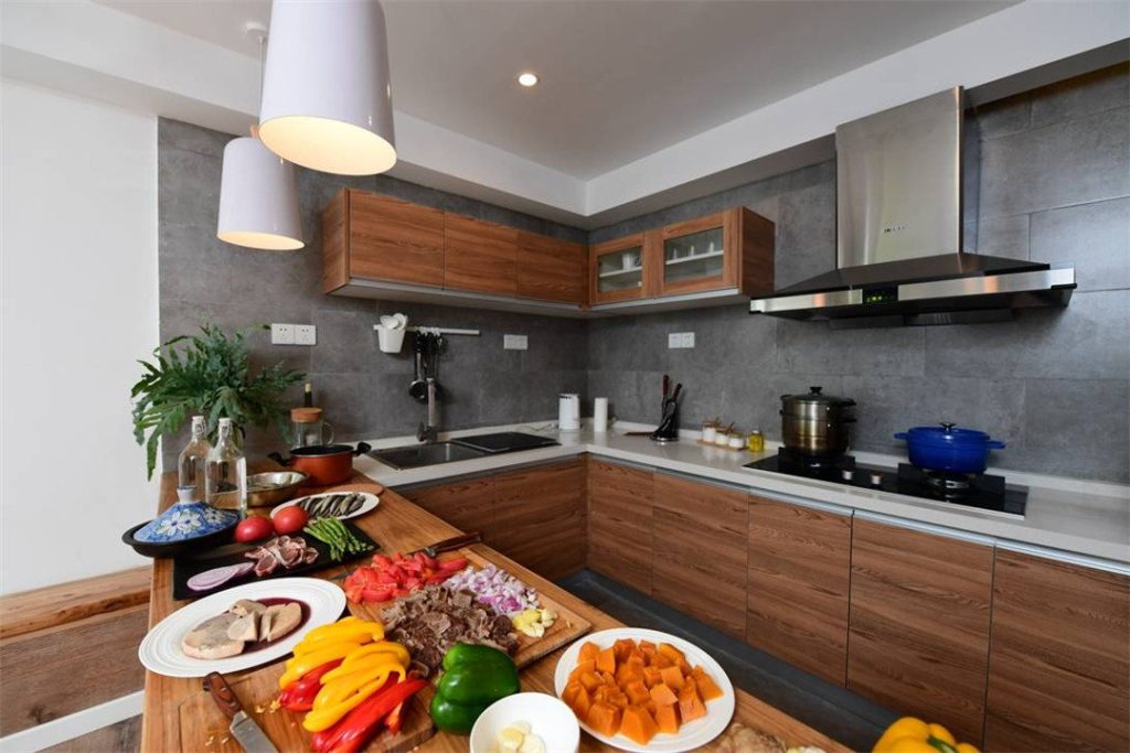 With three walls of cabinets, it offer substantial storage space. This allows for better organization of kitchen tools, cookware, and pantry items, reducing clutter and making it easier to keep the kitchen tidy. Tall cabinets can be included to utilize vertical space effectively.