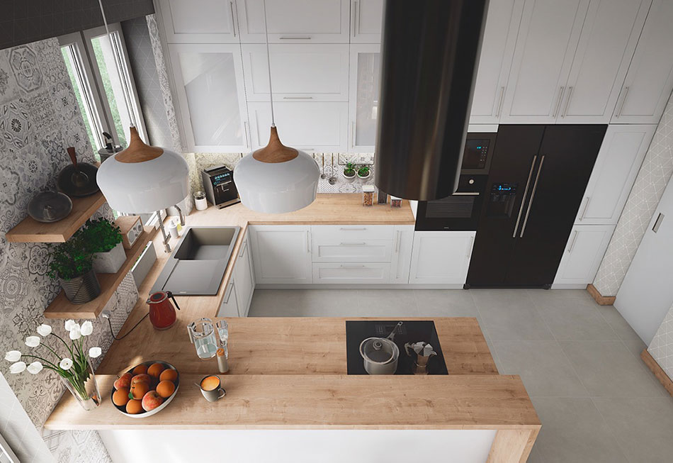 U-shape kitchens can be adapted to fit both small and large kitchen spaces. The layout is flexible and can be customized with additional features such as a breakfast bar, an island, or extra storage options.